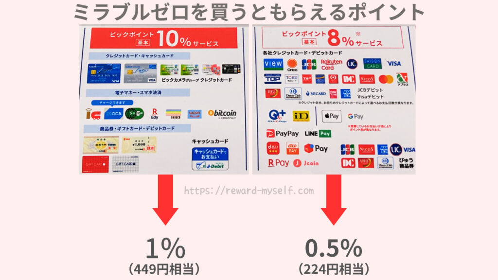 <ミラブルゼロの支払い方法ともらえるポイント>